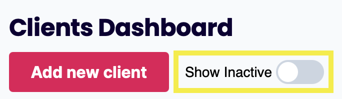 You can toggle the switch to show/hide inactive Clients. If toggled on, deactivated Clients will appear in red at the bottom of your Client list.