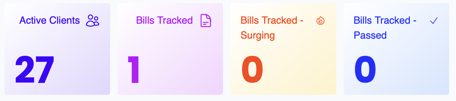 - How many of those tracked bills are moving actively ("Surging")