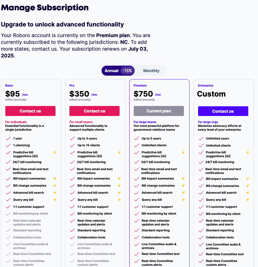 - Premium— For large teams: Our most powerful platform for government relations teams