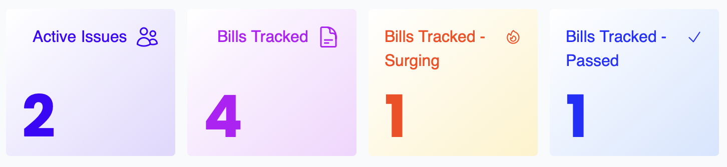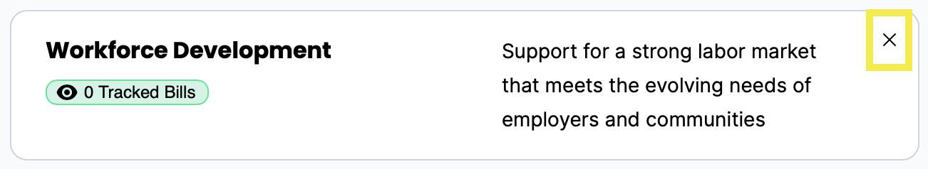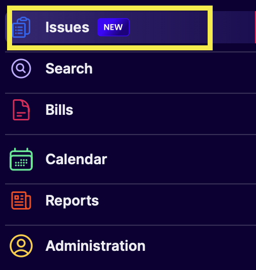 You can create Issues for specific topic areas you want to monitor (like "corporate taxation") or as a way to group legislation that you would like to organize together and report on (like "Weekly Climate Newsletter")