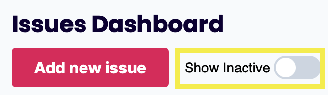 You can toggle the switch to show/hide inactive Issues. If toggled on, deactivated Issues will appear in red at the bottom of your Issue list.