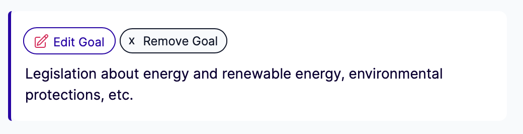 You can edit your Issues and their summary and goal(s) at any time. To update an Issue, click anywhere within the box. When adding a new goal, click "Add Goal" to save.